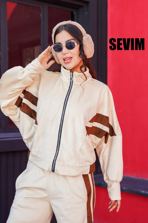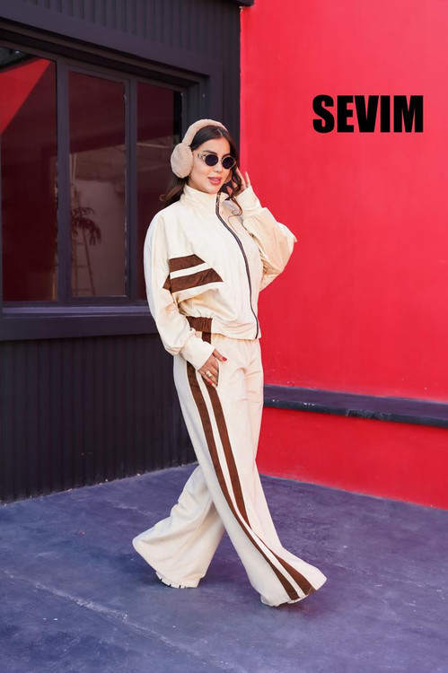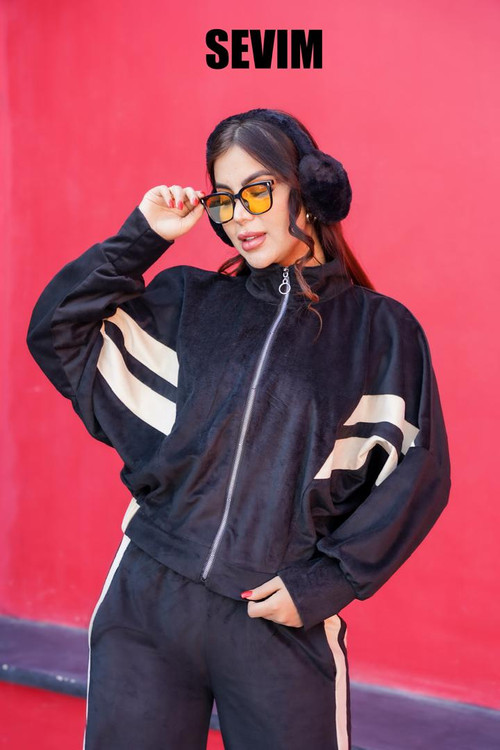ست مخمل زنانه Veloria – ولوریا از پارچهی مخمل مات و لطیف تولید شده و برای هوای سرد بسیار مناسب است. این مدل شامل گرمکن زیپدار و شلوار دمپا آزاد است و طراحی خطی روی آستین و شلوار، استایل آن را متفاوت و فشن کرده است. تنخور آزاد، رنگبندی کامل و دوخت تمیز از ویژگیهای اصلی این ست میباشد. مناسب استفاده روزمره، کافه، دورهمی، دانشگاه، سفر و خانه.
