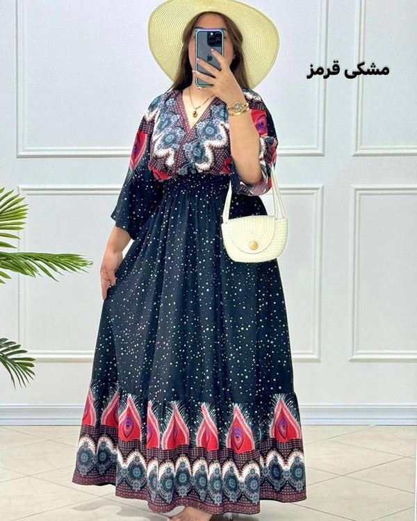 پیراهن بلند چپ و راستی طرح طاووس زنانه فری سایز | سبک، خنک و راحت